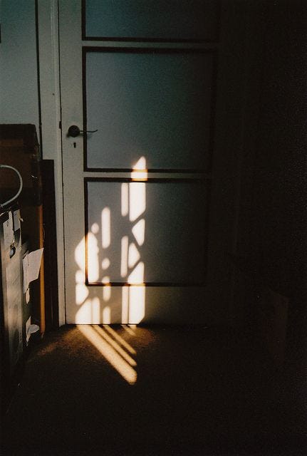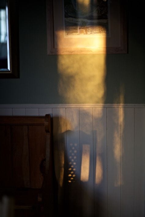 Doves are cooing, husband’s stirring his coffee in the kitchen. So much playing in my mind this morning.. late, late night last night. That constant rain of grace for the past 2 days knocked out the power, so we were gloriously walking amongst a cathedral’s worth of candles in the house. This plays with the Light I had in my head all day yesterday.. against Love, a spouse’s touch..